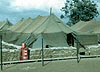 September-October Sometime during this time period the old canvas tents and wooden floors used for barracks and offices were finally replaced. Included in the modernization were newer and larger "facilities" for personal comfort like the old "one seater out house" and the shower room. In their place were built the new cooler and weather resistant aluminum framed Adams Huts that were built on cement pads. |