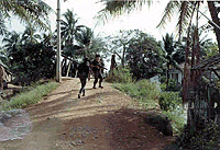 Long Hung Village... Located in the western portion of the Tactical Area Of Responsibility (TAOR), Long Hung was the third largest village. It was bordered on the west by the Dong Nai River and on the north by the Ben Go River that separates it from the village of An Hoa Hung. To the south was a vast area of rice paddies continuing for approximately 1000 meters until reaching the village of An Xuan and Outpost-1. The east side was bordered by a banana grove and forest that extended to the Ben Go River. |