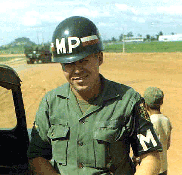 Photo G1090: SP/4 Jack E. Martin, Jr. of A Company, 720th MP Battalion during a lull in a highway security patrol in Bien Hoa Province, III Corps Tactical Zone, South Vietnam sometime in 1967. Courtesy of SP/4 Arthur Diaz, A Company, 720th MP Battalion, 89th MP Group, 18th MP Brigade, October 1967 to October 1968.