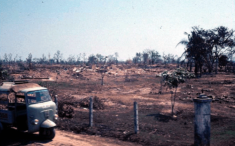 View of Cu Chi City in Hau Nghia Province, III Corps Tactical Zone, Vietnam from an A Company, 720th MP Battalion, 89th MP Group, 18th MP Brigade Armored Personnel Carrier of convoy escort duty on 3 February after the Tet New Years Communist Offensive attack and battle of 31 January 1968. Courtesy of SGT Philip J. Beaver, A Company, 720th MP Battalion, August 1967-August 1968. |