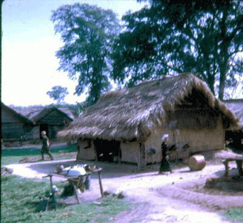 Photo G2092: A typical local village house (nicknamed Hooch by GI’s) during Operation MANHATTAN, east of Tay Ninh City in the Dau Tieng Michelin Rubber Plantation area in Binh Duong and Binh Long Provinces, III Corps Tactical Zone, Vietnam on 30 April 1967. The vast majority of the villagers worked at or depended on the plantation operations for their livelihood. Courtesy of SP/4 Alan M. Portnoy, B Company & 615th MP Company, 720th MP Battalion, October 1966 to October 1967. |
