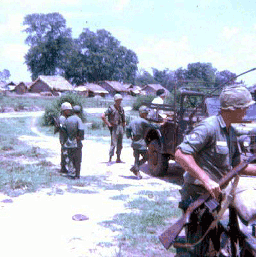 Photo G2098: Unidentified MP’s of B Company, 720th MP Battalion, 89th MP Group, 18th MP Brigade load up as their Viet Cong prisoner in the 3/4 ton truck awaits transport back to the prisoner stockade during Operation MANHATTAN, east of Tay Ninh City in the Dau Tieng Michelin Rubber Plantation area in Binh Duong and Binh Long Provinces, III Corps Tactical Zone, Vietnam on 30 April 1967. If you can identify any of these MP's, please use this Email Link. Courtesy of SP/4 Alan M. Portnoy, B Company & 615th MP Company, 720th MP Battalion, 89th MP Group, 18th MP Brigade, October 1966 to October 1967. |