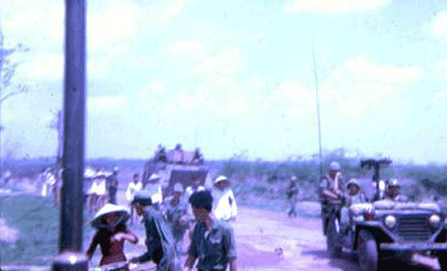 Photo G2107: B Company, 720th MP Battalion, 89th MP Group, 18th MP Brigade detachment members escort a group of 25 Vietnamese draft evaders while they are marched to a local Popular Force outpost and National Police Station (Canh Sat) after being taken into custody during Operation MANHATTAN, east of Tay Ninh City in the Dau Tieng Michelin Rubber Plantation area in Binh Duong and Binh Long Provinces, III Corps Tactical Zone, Vietnam on 30 April 1967 . Courtesy of SP/4 Alan M. Portnoy, B Company & 615th MP Company, 720th MP Battalion, 89th MP Group, 18th MP Brigade, October 1966 to October 1967. |