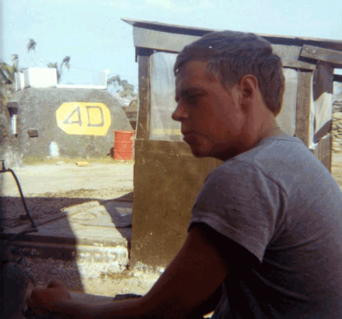 Photo G2691: Unidentified member of B Company, 720th MP Battalion, 89th MP Group, 18th MP Brigade, in the compound at Vinh Long, in IV Corps Tactical Zone, Vietnam in 1971. If you can identify this soldier use this Email Link. Courtesy of SP/4 Marion Carl "Pete" Foster, B Company, 720th MP Battalion, 89th MP Group, 18th MP Brigade, August 1971-April 1972. |