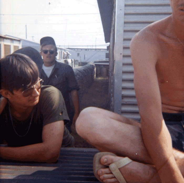 Photo G2698: Unidentified members of B Company, 720th MP Battalion, 89th MP Group, 18th MP Brigade, in their compound on Long Binh Post, in III Corps Tactical Zone, Vietnam in 1971. If you can identify these soldiers use this Email Link. Courtesy of SP/4 Marion Carl "Pete" Foster, B Company, 720th MP Battalion, 89th MP Group, 18th MP Brigade, August 1971-April 1972. |