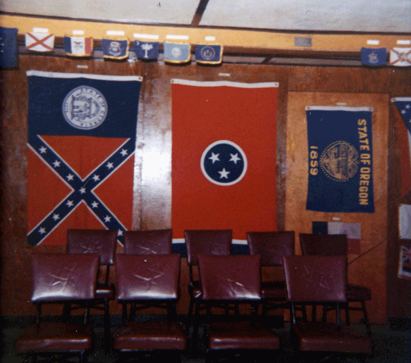 Photo G2741: Vinh Long Detachment Day Room of B Company, 720th MP Battalion, 89th MP Group, 18th MP Brigade, Vietnam in 1971. Left to right State Flags of Georgia, Tennessee, and Oregon. Courtesy of SP/4 Marion Carl "Pete" Foster, B Company, 720th MP Battalion, 89th MP Group, 18th MP Brigade, August 1971-April 1972. |