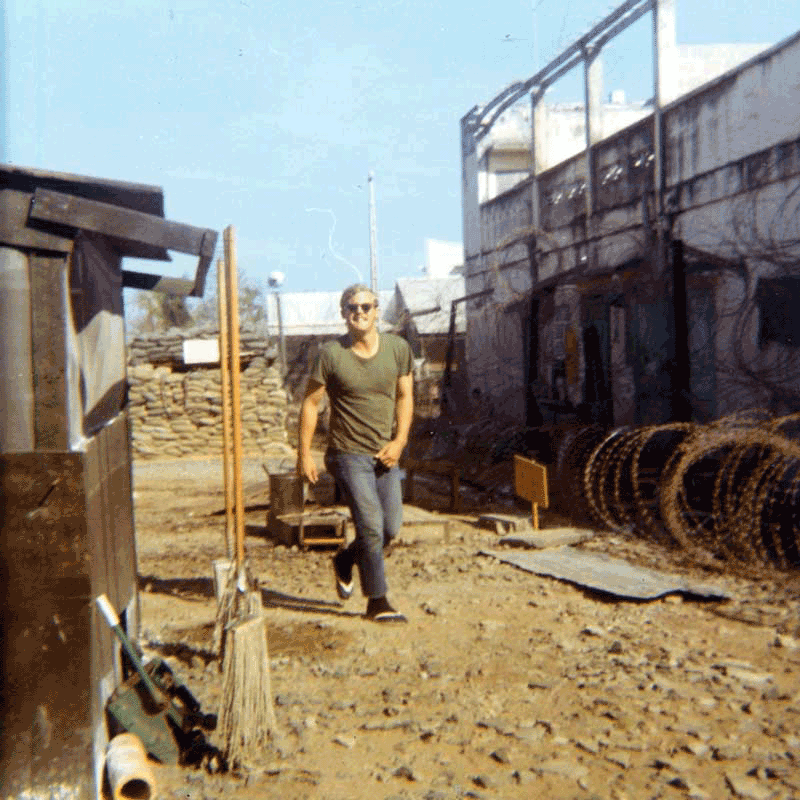 Photo G2801: Unidentified member of B Company, 720th MP Battalion, 89th MP Group, 18th MP Brigade in the Headquarters Detachment compound yard at Vinh Long, Vietnam in 1971. If you can identify this MP use this Email Link. Courtesy of SP/4 Marion Carl "Pete" Foster, B Company, 720th MP Battalion, 89th MP Group, 18th MP Brigade, August 1971-April 1972. |
