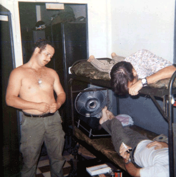 Photo G2690: Unidentified members of B Company, 720th MP Battalion, 89th MP Group, 18th MP Brigade, in their barracks on Long Binh Post, in III Corps Tactical Zone, Vietnam in 1971. If you can identify these soldiers use this Email Link. Courtesy of SP/4 Marion Carl "Pete" Foster, B Company, 720th MP Battalion, 89th MP Group, 18th MP Brigade, August 1971-April 1972. |